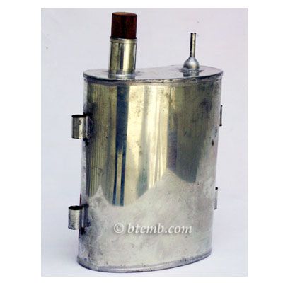 Tin filter canteen. It has two spouts. One is corked, other is open. Supplied with white cord sling. There is a picture similar to this in Echos of Glory "Arms & Equipments of Confederacy"