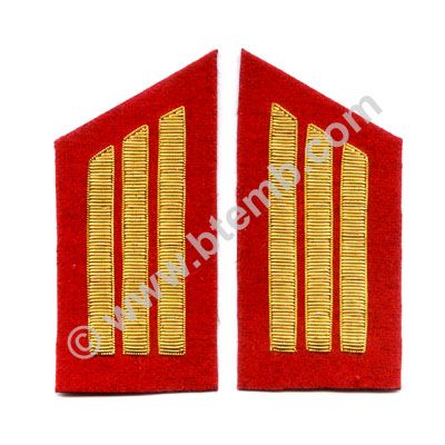 Captain Three Gold Embroidered Collar Bars on Red. Available with Red, Blue, Yellow, Green and Black Background.