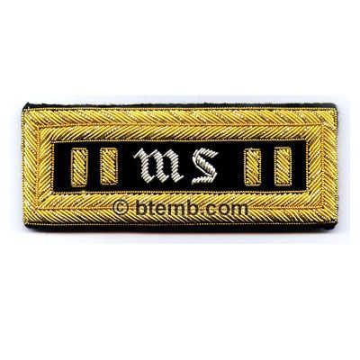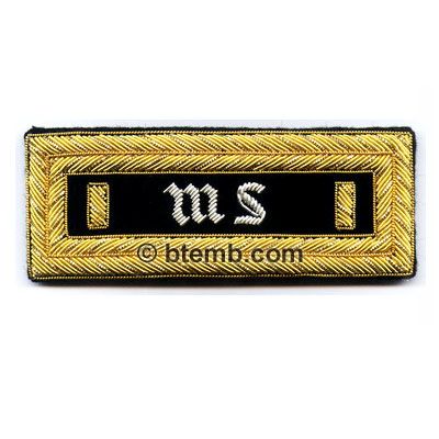 Gold bullion embroidery with double border, silver MS on velvet background. All of our shoulder boards are available with Dark Blue velvet background for Staff and General Officers, Saxony Blue velvet background for Infantry, Red velvet background for Artillery, Yellow velvet background for Cavalry and Green velvet background for Sharpshooter.