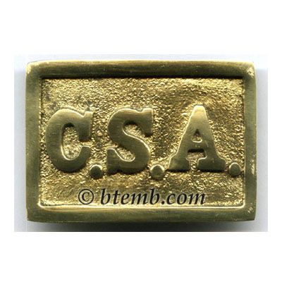 Standard Confederate States of America [C.S.A] rectangular solid brass buckle with hooks on back for fastening to belt.