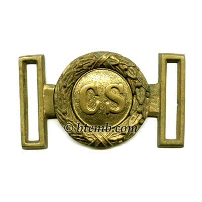 Standard Civil War CS oval solid brass buckles with hooks on back.